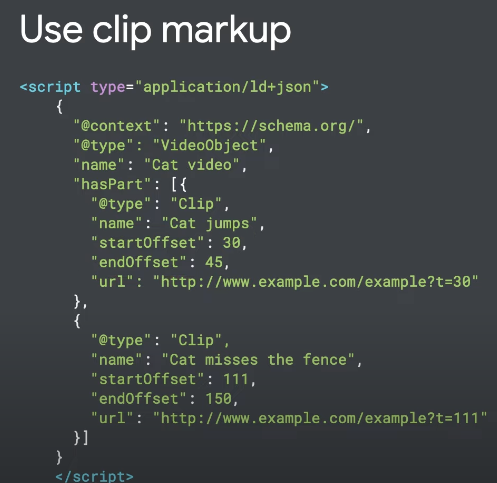 - SeekToAction markup: Allows Google to automatically identify key moments in your videos.