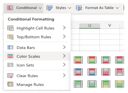 Create a heatmap using conditional formatting.