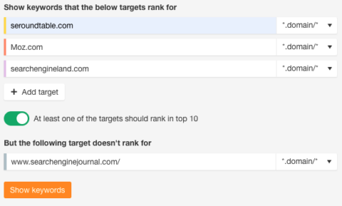 After you’ve entered your competitors into the tool, click “show keywords.”