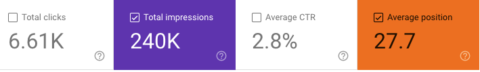 First, you want to figure out which keywords have the most visibility (impressions) in Google search results.